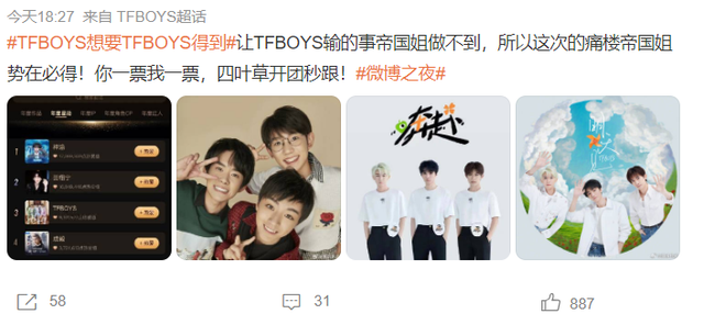 看到这样的情况后,TFBOYS的各家粉丝也开始发力,也就是说,小螃蟹、小汤圆、千纸鹤竟一致对外,看到这样的情况,网友们忍不住吃瓜,要知道TFBOYS的内斗是非常严重的,合力的事情真的太少见了,目前,TFBOYS超话排名已经上升到第三名。