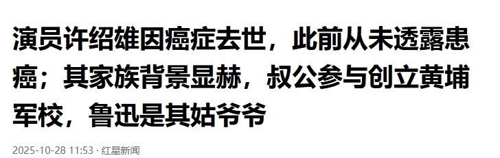 随着许绍雄的离世,他生前鲜少提及的家族背景也被外界重新关注,其中一段显赫渊源尤为引人注目。